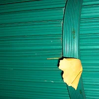 버스에서 내려 집으로 가다가 가로수에 둘러쳐진 프라스틱 구조물에 걸린 은행잎 하나를 봅니다.