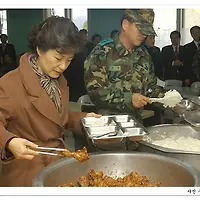 박전대표가 김치를 버무리는 동안 프레임 밖에서는 ..