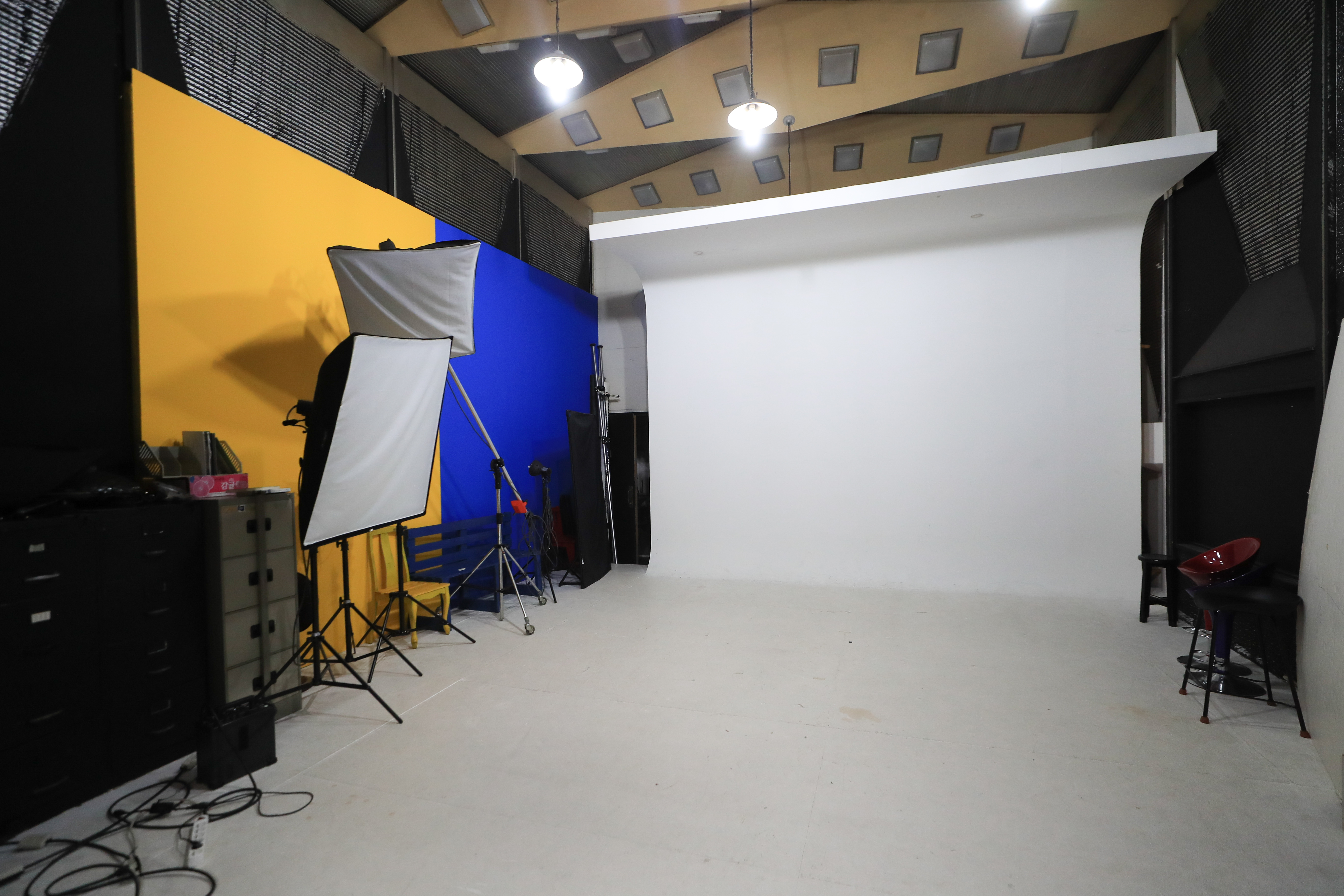 벽은 조명이 반사되서 돌아오는걸 방지하려고 검게 칠해놨구요. 2.8미터짜리 배경지 설치 가능하도록 배경벽을 세워 놓았습니다.