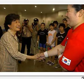 박근혜대표 태능 선수촌 방문. 2005년 8월 5일 오전 11시 태능 선수촌입니다. 박대표가 우리나라 간판 역도선수인 장미란 선수와 밝은 표정으로 악수를 나누고있습니다 장미란 선수에게 최근 경기에서 세계신기록을 못낸것이 아쉬웠다며 박수를 치며 격려 말을 마친 박대표 갑자기 정색을 하며 장선수에게 다가가 손을 내밉니다. 장선수 약간 당황한 표정입니다. 박대표가 장선수의 굳은 살이 박힌 손을 안스러운 듯 바라보며 쓰다듬고 있습니다. 오전 9시 30분 김승규 국정원장이 국정원의 불법 감청을 인정하고 사과하는 기자회견을 했습니다. 더보기