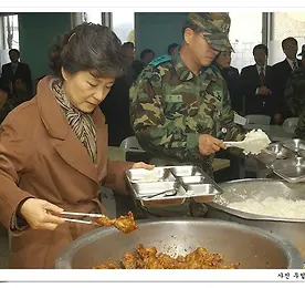 박대표 춘천 102 보충대대 방문. 2005년 11월 29일 춘천 102 보충대대입니다. 박대표가 부대 내 식당에서 식판에 음식을 담고 있습니다. 박대표가 담아놓은 밥의 양은 장정들 딱 두입꺼리입니다. 박대표는 인사하는 사람과 눈을 맞추고 환한 웃음으로 인사합니다. 부대내 행사를 마치고 정문 밖에서, 입대하기 위해 부모 친지들과 시간을 기다리고있던 한 입대자의 손을 잡고 격려를 하고있습니다. 대한민국엔 박근혜대표를 모르는 사람이 없는 줄 알았습니다. 아닙니다. 있더군요. 이날 입대하는 인기배우 원빈을 보러 온 일본인 열성 팬들입니다. 박대표가 다가가 손을 내밀어도 박대표를 모르는 일본인은 영문을 몰라합니다. 순간적으로 박대표도 당황하는 것 같았습니다. 하지만 이 일본인은 박대표 코앞에서 사진을 찍고있습니다. 원빈을 찍으려 가지고온 디카에 .. 더보기